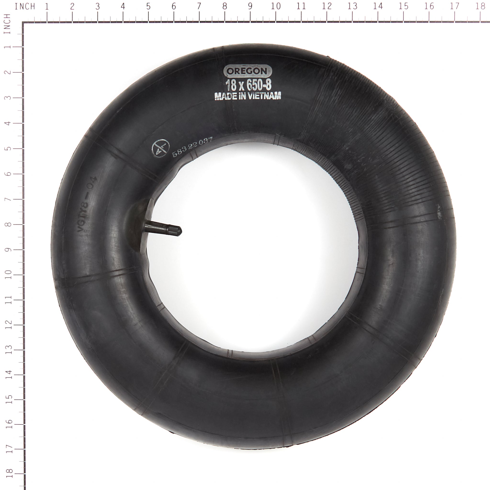 This innertube is 18 X 650-8 and has a straight valve. Oregon® replacement parts are built to meet or exceed OEM standards. Many parts look similar, so it’s crucial to ensure you’re choosing the right replacement for your original equipment or engine model. Not sure? Use our Parts Lookup Tool to view part diagrams and find the correct replacement.