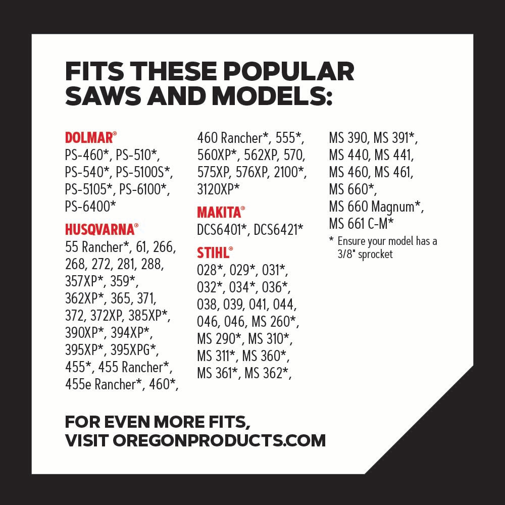 • Recommended for saw sizes between 50-100cc and bar lengths between 16-36"