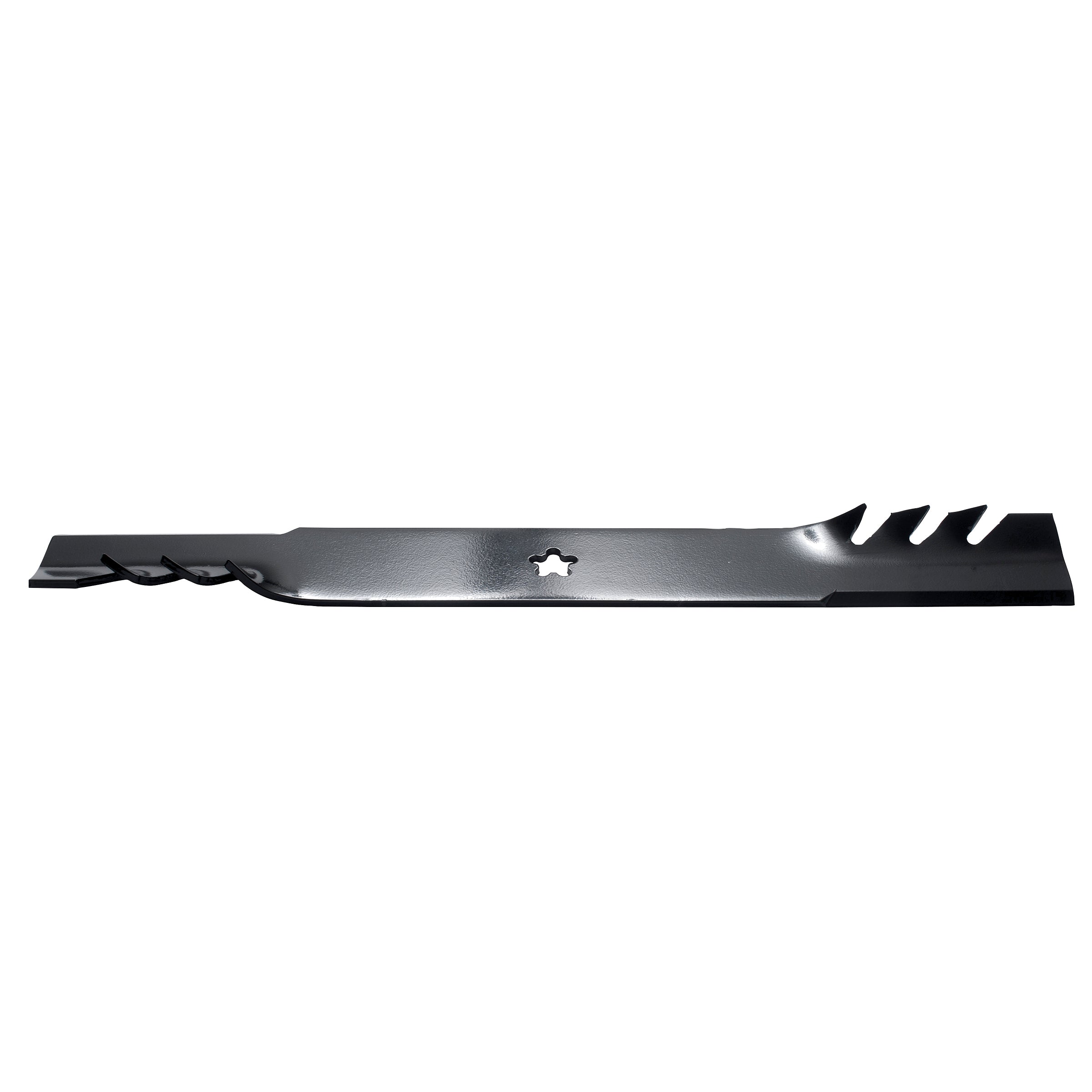 - Aggressive blade angle increases air flow to push debris up and out for superior bagging and side discharge